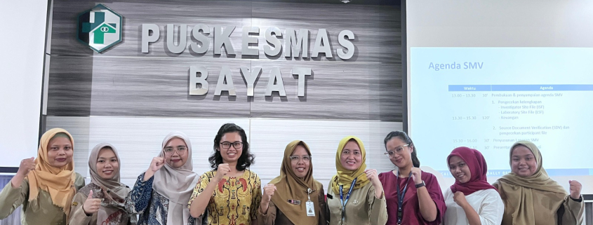 Tim SMV terdiri dari dr. Scolastika Dita Kristian, M.Med.Sc., Sp.A, dr. Ardhina Ramania, MPH, apt. Gergorius Gena Maran, M.S., Fadyan Ratna Dewi, S.K.M., serta tim peneliti dari Puskesmas Karanganom dan Puskesmas Bayat. Kegiatan ini bertujuan untuk memantau kondisi dan kinerja site, memastikan penelitian berjalan sesuai protokol dan SOP, serta mengevaluasi dokumen dan logistik studi.