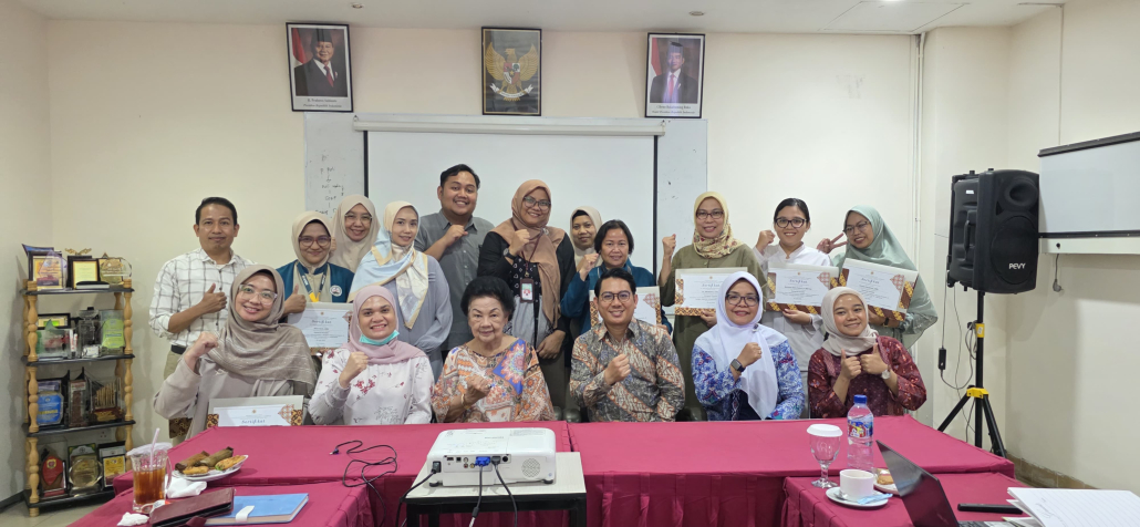Sesi foto bersama Prof. dr. Jarir At Thobari, DPharm, Ph.D., dan All Tim Peneliti RS Budi Kemuliaan.